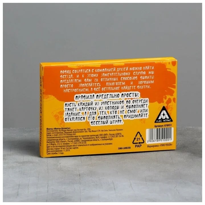 Купить игра для компании "фанты буханты" 20 карт от 100 руб. с доставкой до пункта выдачи в Орле. Интернет магазин ДекаМаркет. Оплата при получении.